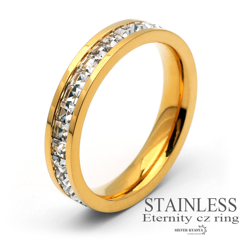 - (14号) ステンレス リング 指輪 エタニティリング フルエタニティ CZダイヤ ゴールド 金 金属アレルギー対応 男女兼用