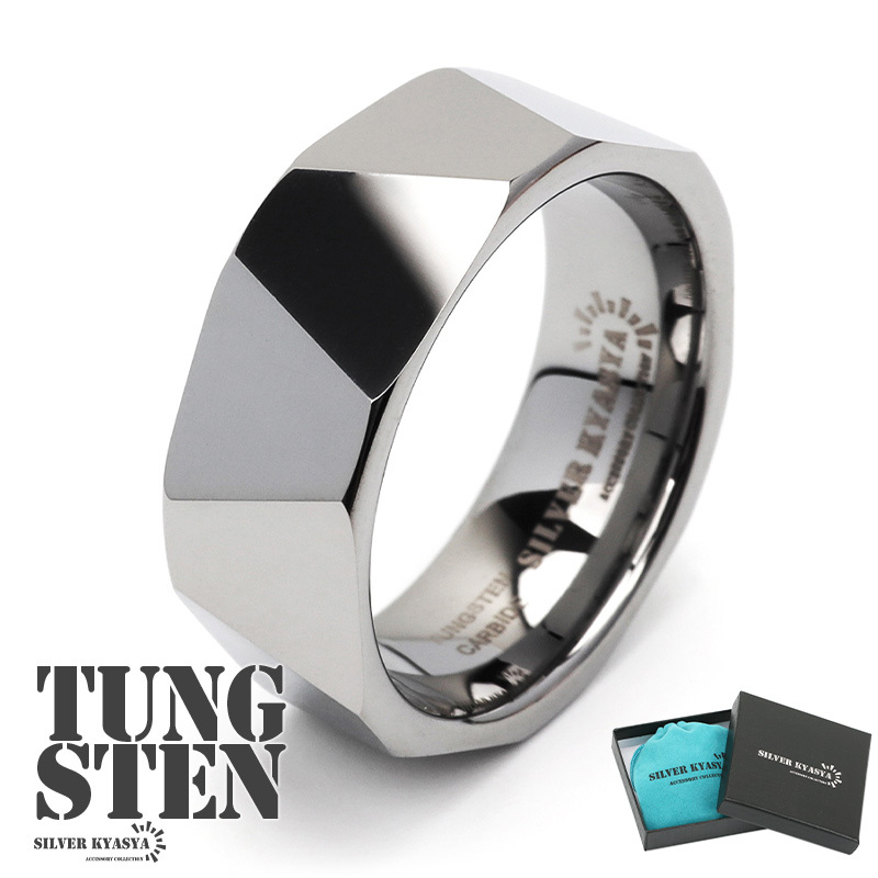 - (31号) タングステン リング メンズ カットリング シルバー 銀色 ダイヤモンドカット ごつい 金属アレルギー対応