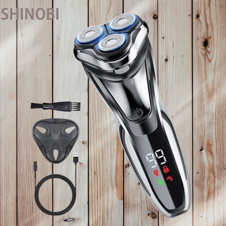 > USB充電式 電気シェーバー 髭剃り ひげ剃り 360°回転式 高速強力モーター 電動 LED大画面 低騒音 防水 お風呂剃り可 乾湿両用 水洗い可