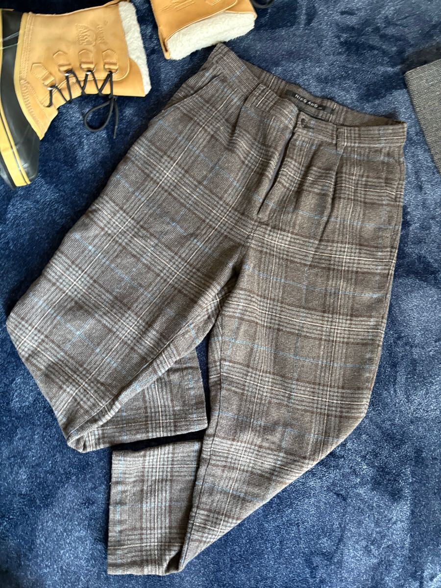 - 超美品 niko and... ニコアンド ワイドテーパード 高品質ウール パンツ ブラウン系チェック お洒落アンクルパンツ size3(L) 胴囲84cm