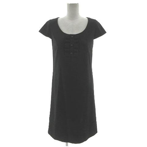 - エフデ ef-de ワンピース フリル フレンチスリーブ ひざ丈 シンプル ウール混 ブラック 黒 9 レディース