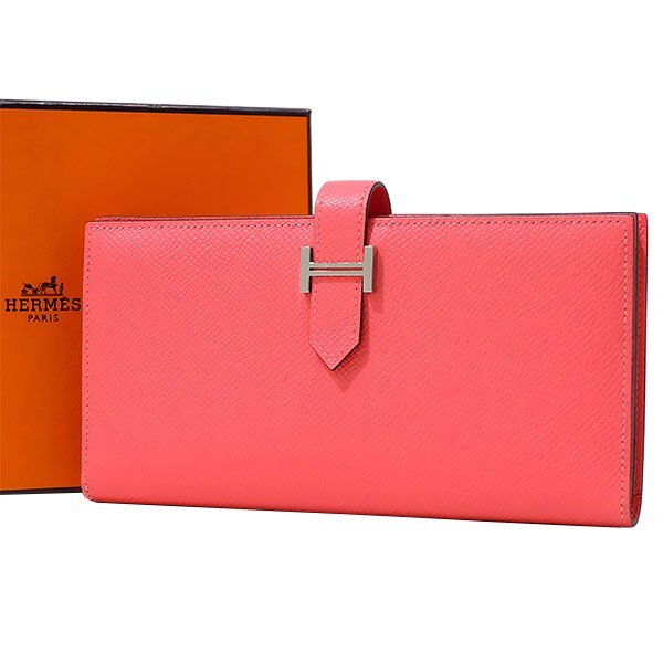 > 【送料無料】【本物】人気★HERMES★エルメス★ベアンスフレ★ローズアザレ★ヴォーエプソン★Y刻印★二つ折り長財布★レディース★ピンク