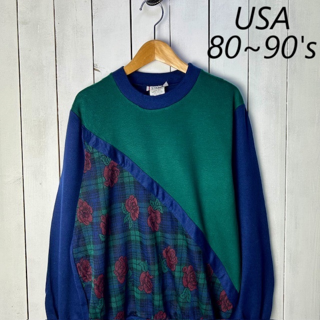 > USA古着 80s~90s USA製 切替え ライトスウェット S 紺 オールド ヴィンテージ アクリル アメリカ古着 やや薄手 ユニセックス ●252