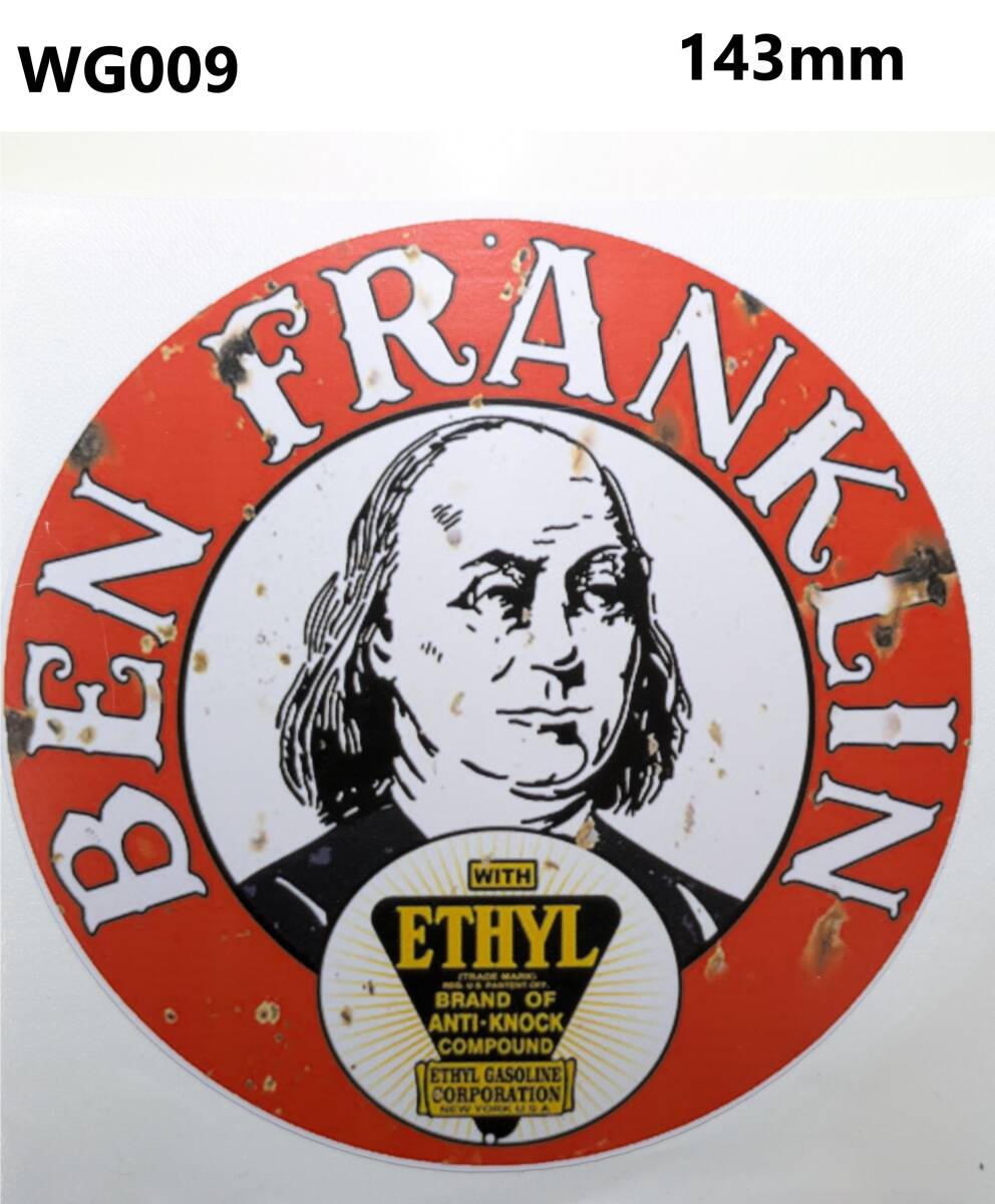 > GW09-9 特価~15%OFF ヴィンテージスタイル BEN FRANKLIN オイルステッカー ガソリンステッカー ダメージ加工 レトロ ガレージ デカール