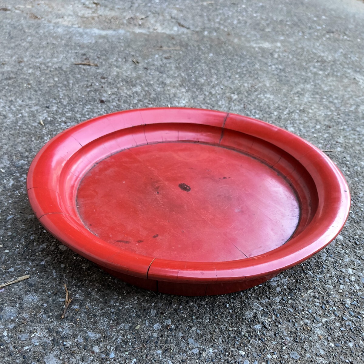 - 中国 アンティーク 朱塗 高台付 盆 清朝 検) 清時代 古民芸 骨董 古道具 民芸 古民具 古玩 桶