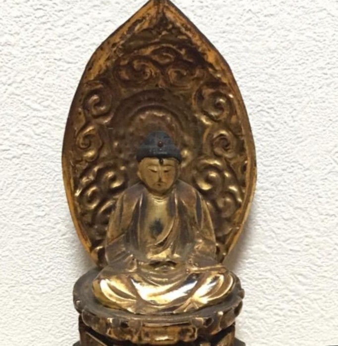 - 【仏像・仏具】阿弥陀如来像 木製 座像 光背 鍍金 念持仏 古いものです ディスプレイ用品 インテリア用品 骨董品 アンティーク