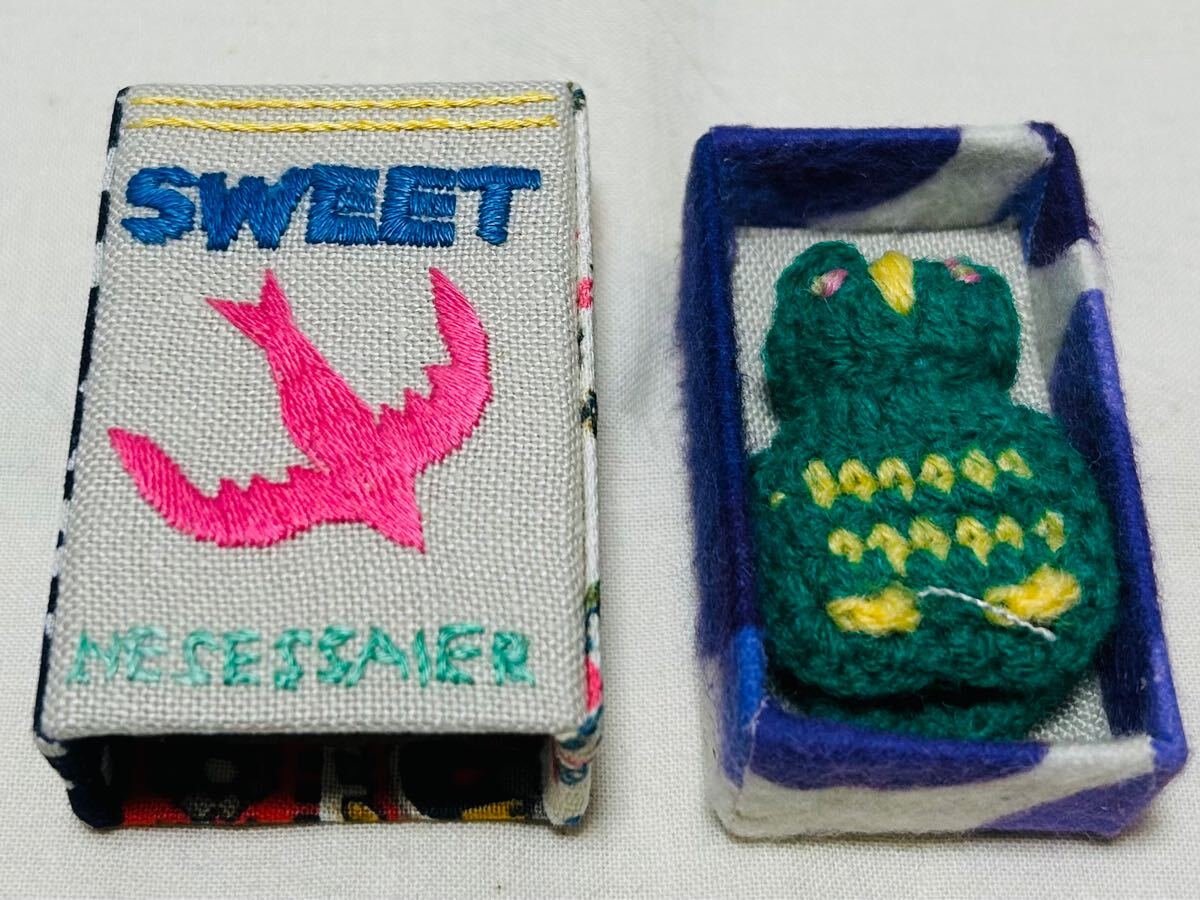 - 未使用品★北欧雑貨★フクロウ指人形★グリーン★ハンドメイド★手作り★マッチボックス入り★アート雑貨★お守り