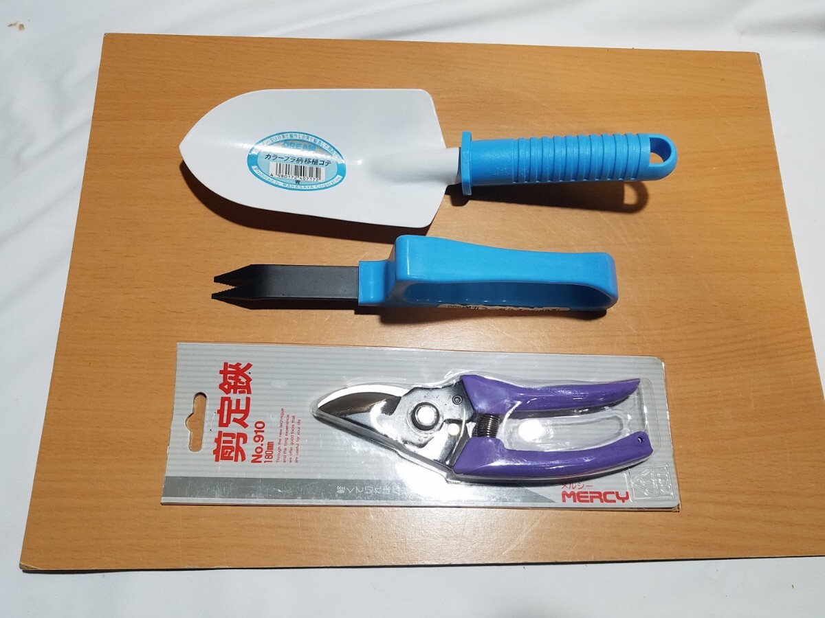 - 116-3 剪定鋏 スコップ 草抜き 未使用品 3点セット ガーデニング 家庭菜園 移植ゴテ 草抜君 DREAM MERCY 盆栽 枝切 花 鋏 シャベル はさみ