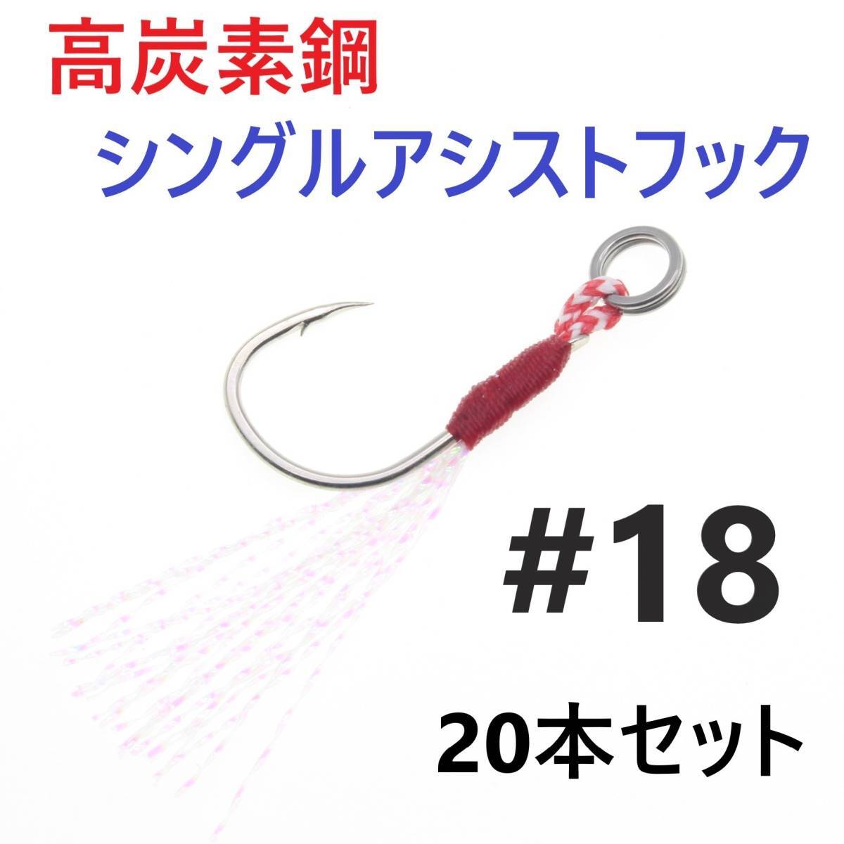 > 【送料150円】高炭素鋼 シングル アシストフック #18 20本セット ジギング メタルジグ 伊勢尼針 ティンセル スプリットリング付き