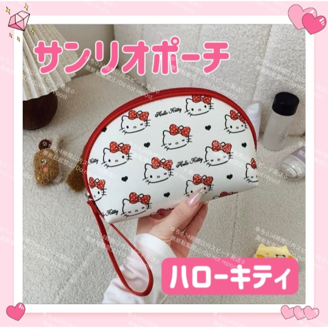 - 海外限定 サンリオ ハローキティ ラウンド ポーチ 多機能 大容量 メイク 化粧 トラベル 小物入れ 可愛い ②