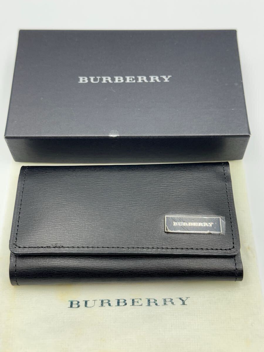 - 未使用品 バーバリー キーケース ブラック レザー メンズ レディース キーリング カードケース パスケース 財布