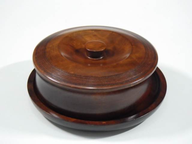 - r5B049R- 昭和レトロ 木製 天然木 蓋付菓子入れ 菓子器 盆付き 茶道具 工芸品