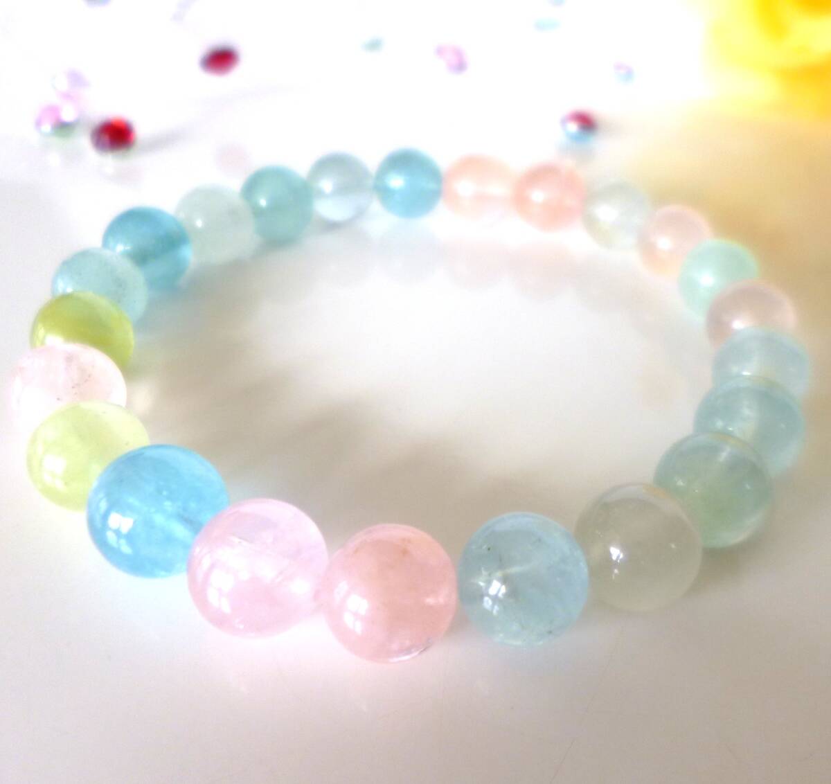 > ☆愛のミックスベリル☆宝石質☆綺麗な透明感☆アクアマリン☆モルガナイト☆エメラルド☆ ☆高品質AAA☆ ☆8.5mm☆ ☆16cm
