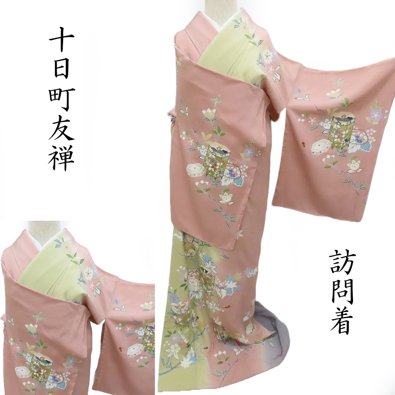 > Club藤★訪問着 四季の花と貝桶文様 鴇浅葱色 本加工染色 金駒刺繍 染め分け訪問着 フォーマル 式事にも 御仕立上り (3387)