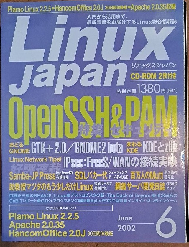 - ■【Linux Japan】リナックスジャパン 2002年6月号 付録CD-ROM2枚組 Plamo Linix 2.2.5ほか(秀和システム)
