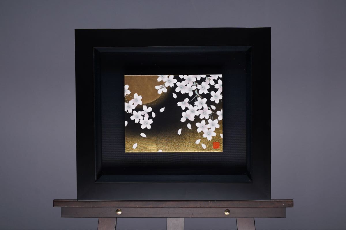 - 真作 中村哲叡「夜櫻」日本画 F2号(24cmx19cm) サイン・共シールあり 美術市場掲載実力画家 比叡山延暦寺障壁画 金箔使用 細かく描かれた桜