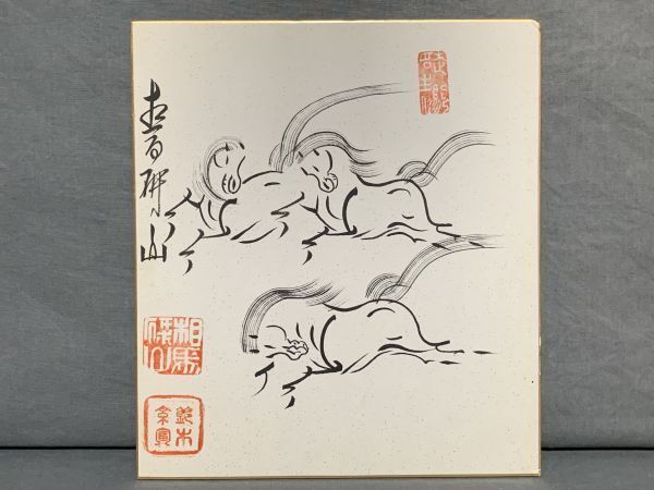 - 【真作】色紙 相馬磔山:作 『馬図』 鈴木京富 詩/短歌/俳句/情景画 《色紙3枚以上送料無料》 L1229O