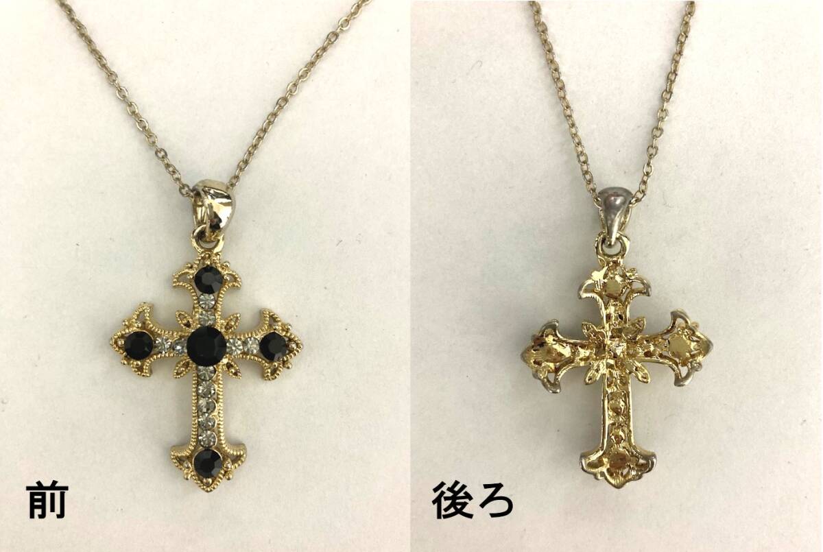 - ブラック&クリスタルストーンの十字架ネックレス★ゴールド