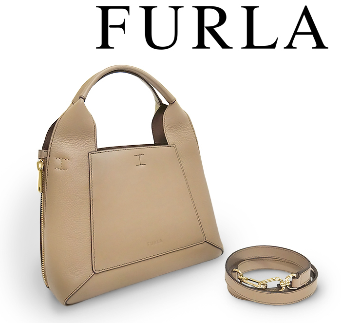 - 【未使用 超美品】 FURLA フルラ ジルダ Mサイズ 2WAY ハンドバッグ 斜めがけショルダーバッグ 鞄 レザー 革 ベージュ ブラウン バイカラー