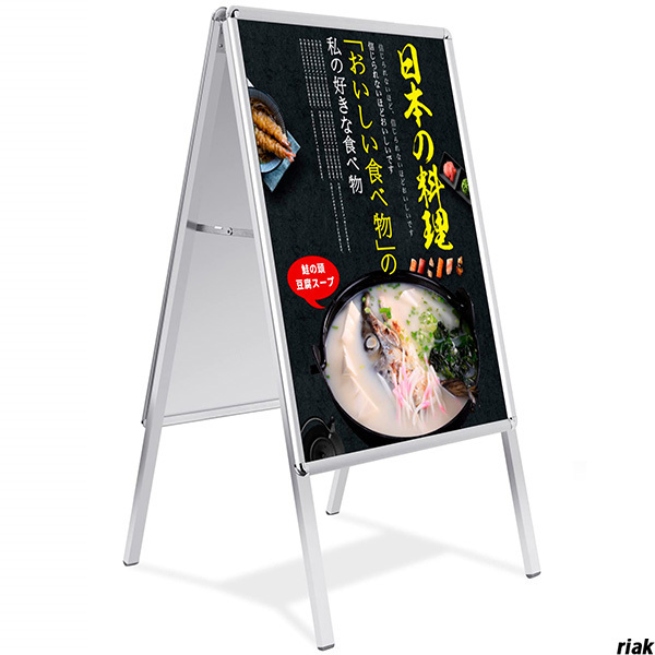 > 【折りたたみ可能で収納しやすく、省スペースで保管できる】看板 A1サイズ アルミ製 パネルスタンド 四辺開閉式 A型スタンド構造