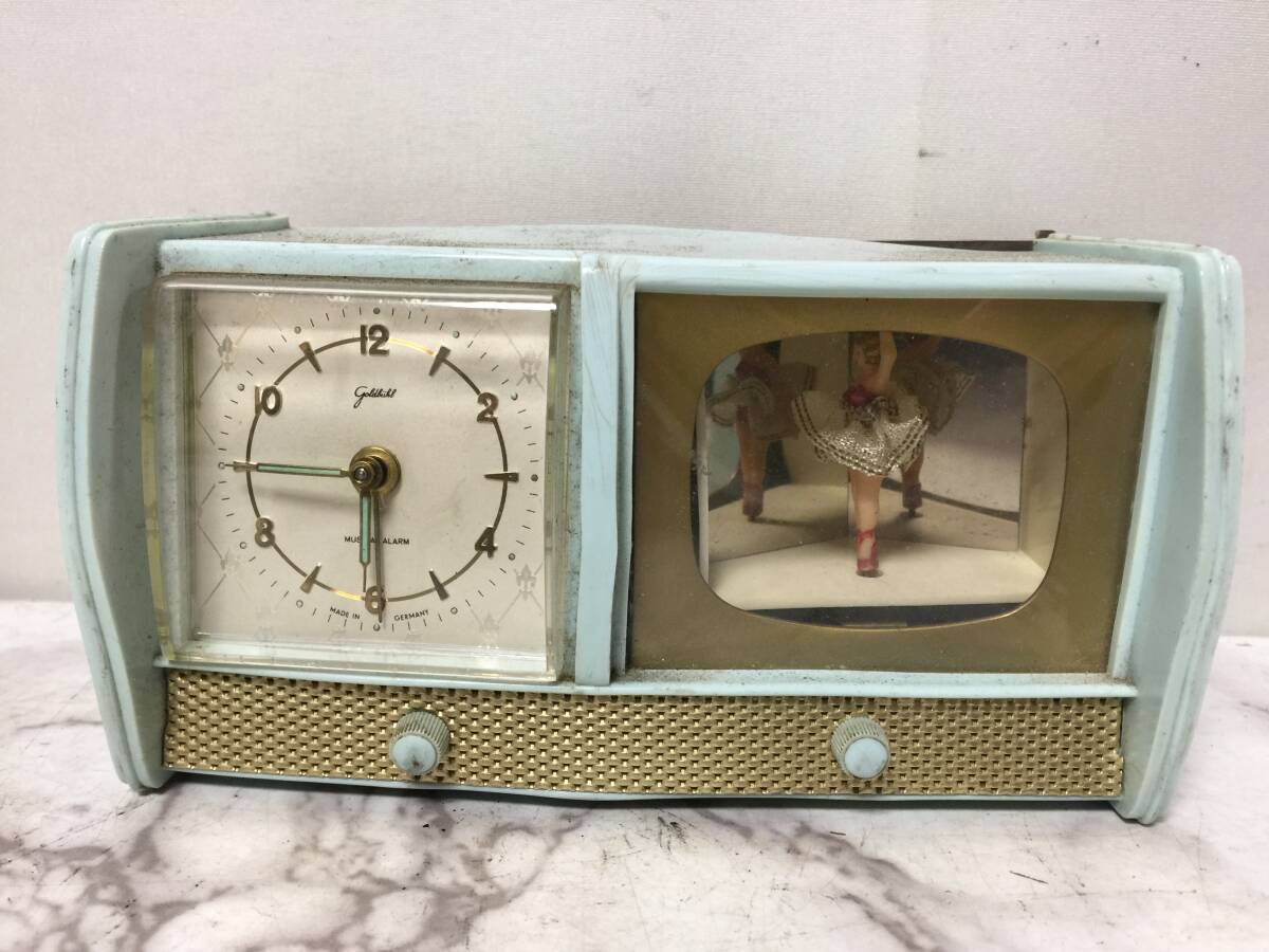- 昭和レトロ ドイツ製 バレリーナ 置時計 オルゴール ゼンマイ 横約14.5cm ジャンク 当時物 A2
