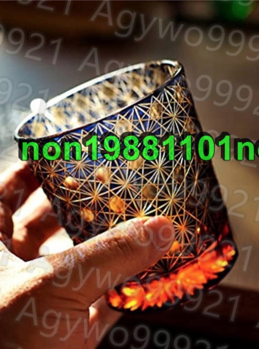 > 切子 菊繋ぎ紋 高級グラス 冷酒杯 手作りワインセット ロックグラス ビールウイスキーグラス 250ml (青)