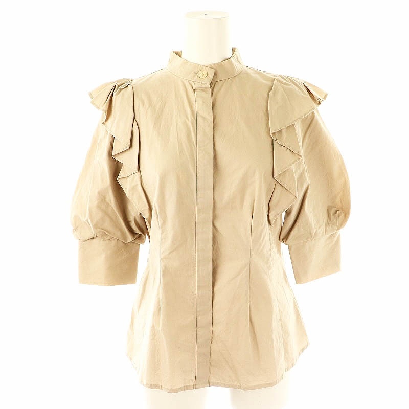 > スナイデル SNIDEL サステナブル Sustainableフリルスタンドカラーブラウス シャツ 七分袖 フロントボタン F ベージュ