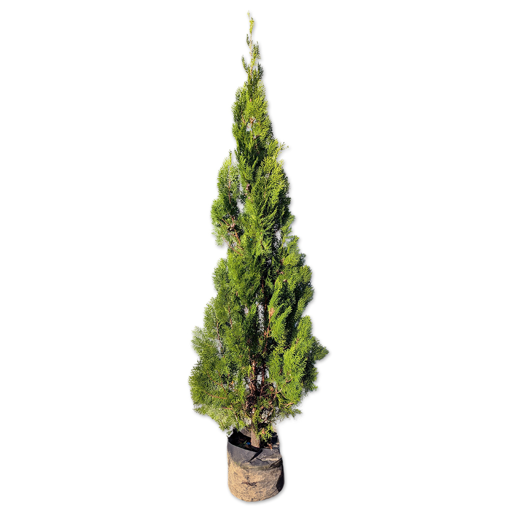 エレガンティシマは上に高く伸びます。剪定を繰り返し行うことでしまったスマートな樹形になります。近年人気のコニファーで基本色の緑色をだすのに良く使われています。