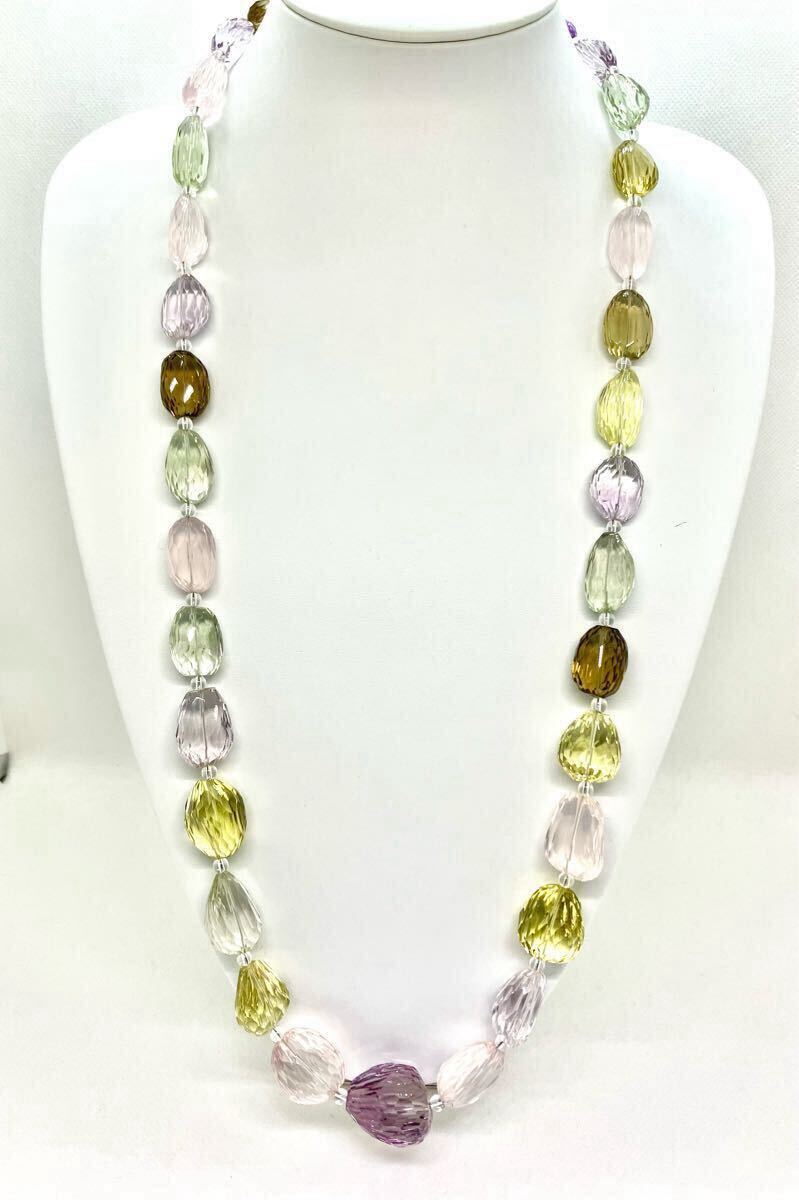 - 【新品】マルチカラークォーツロングネックレス*水晶*大ぶり*華やか*アメジスト*グリーンクォーツ*ローズクォーツ*シトリンクォーツ