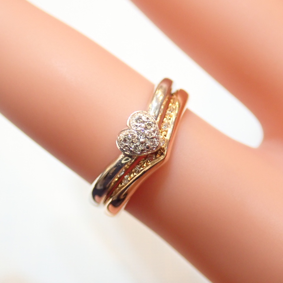 - ■STAR JEWELRY K18WG/K18PG ダイヤモンドリング ハート&V字重ね付けセット■スタージュエリー 指輪■中古磨き仕上げ■