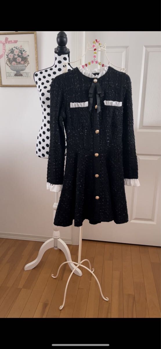 - 【未使用】黒 ツイード ワンピース ミニ 長袖 XSサイズ 小さいサイズ 【トルソーは11号】