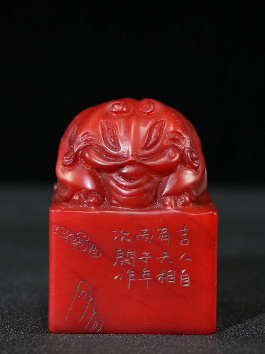 - 【超珍館蔵】寿山石 紅田黄石 細密彫 瑞獣印章 置物 古賞物 古美術品 稀少珍蔵品