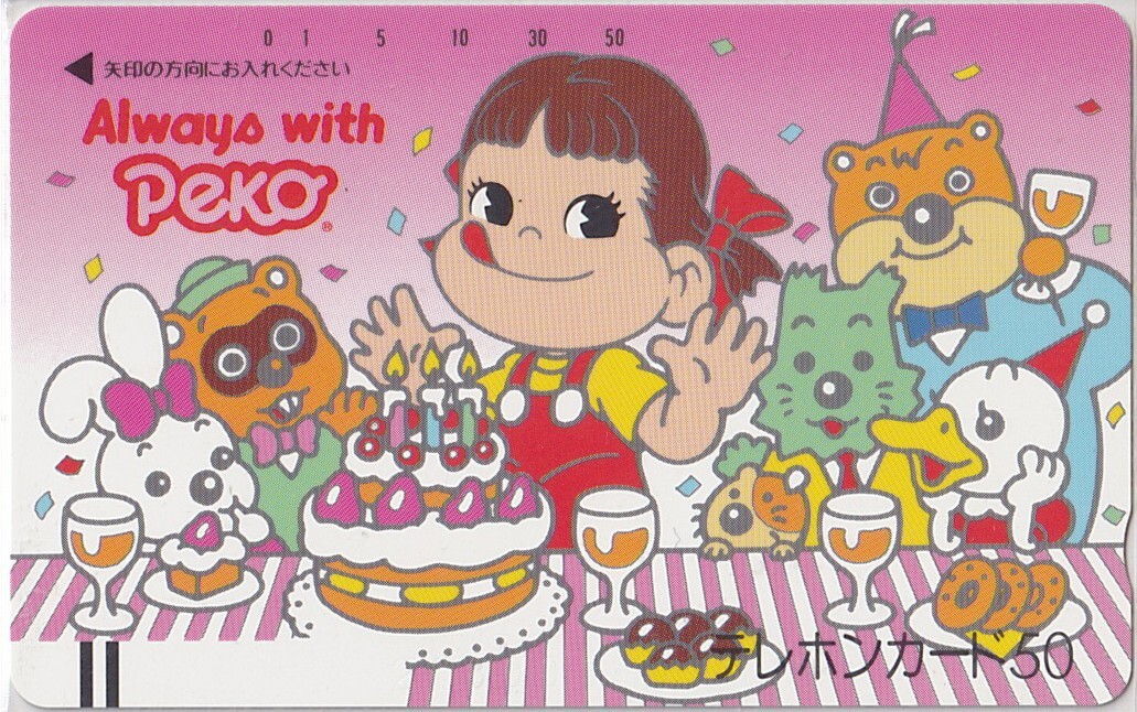 - =不二家ペコちゃん= 「タイプJ ケーキ」販売テレカ k5305