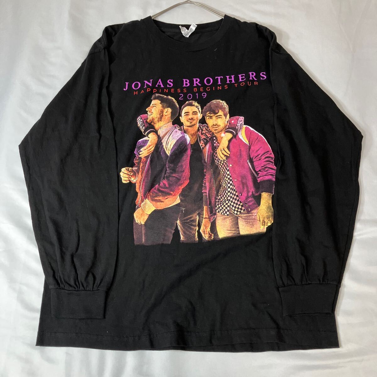 > JONAS BROTHERS ジョナス・ブラザーズ ツアーTシャツ ミュージックTシャツ 長袖 ロンT ビッグプリント 両面プリント L 黒ブラック