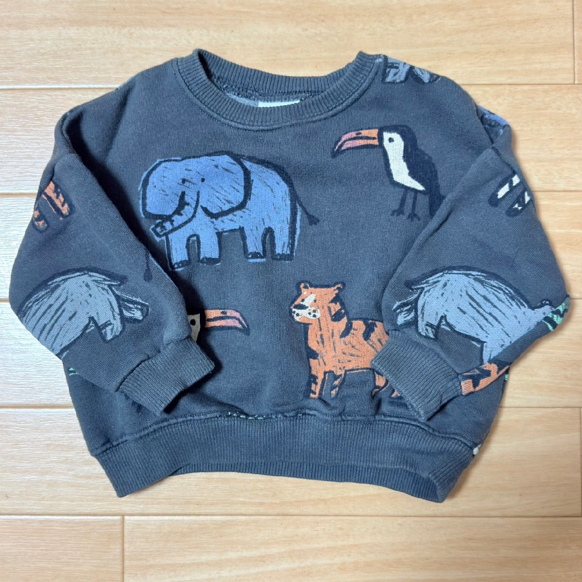 > ZARA ザラ ベビー スウェットシャツ 動物イラスト トレーナー 長袖 裏起毛 チャコールグレー 80cm