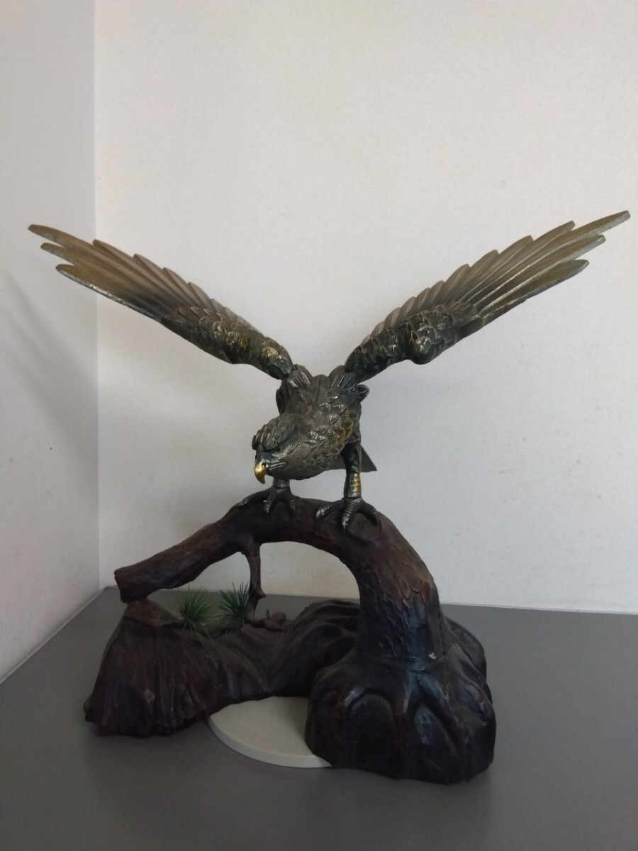 - 9159★ 鷹置物 松 細密彫刻 高さ56cm アンティーク 古美術 オブジェ 縁起物