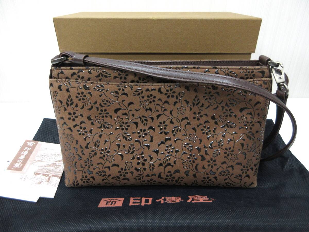 - 印傳屋 インデンヤ ショルダーバッグ ポシェット ポーチ ブラウン 茶 ●② a