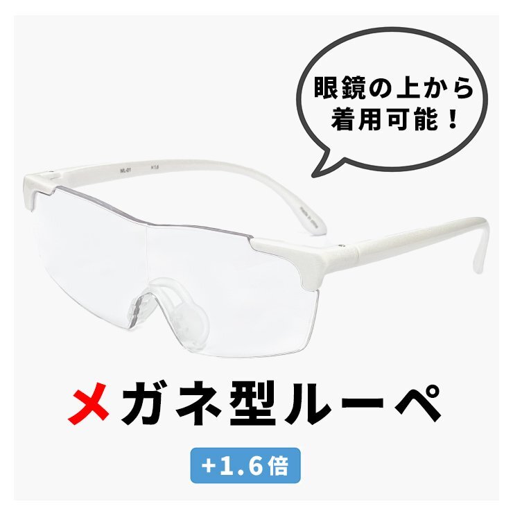 - 新品 メガネ型ルーペ 拡大鏡 1.6倍 ml-01-wt ルーペ メガネ おしゃれ メンズ レディース ユニセックス 眼鏡の上から着用可能 ホワイト 白
