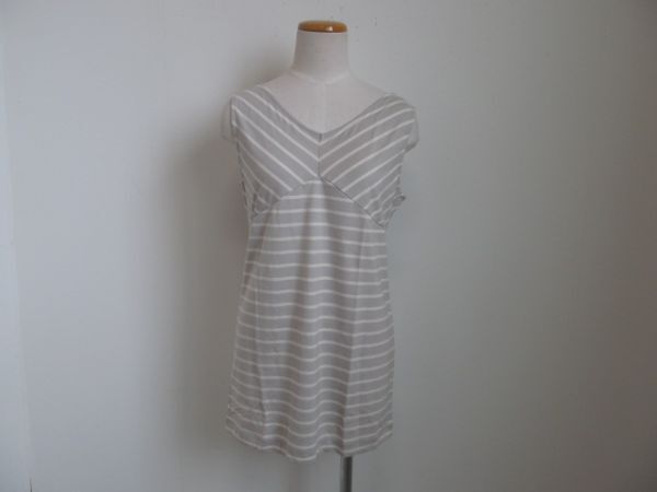 > (60506)ELLE エル レディース 2WAY ノースリーブ カットソー チュニックボーダー グレー×ホワイト 38 未使用