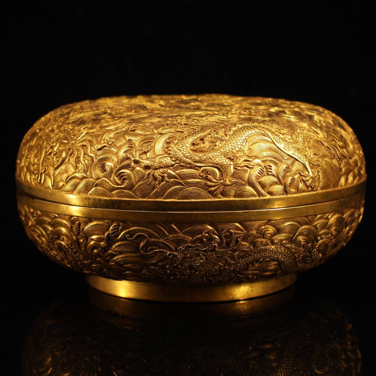 - ▽鴻▽ 銅製 塗金 龍紋 首飾盒 置物 古賞物 中国古玩 中国古美術