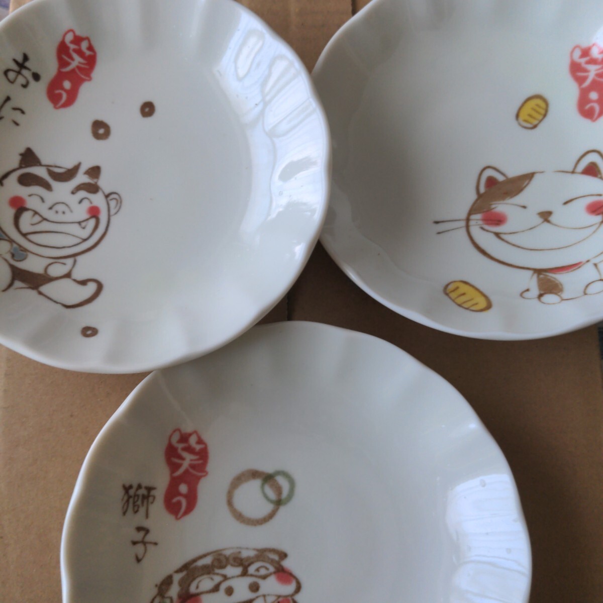 - もち吉【新品未使用品】招き猫おに獅子 小皿【3枚】ノベルティグッズ
