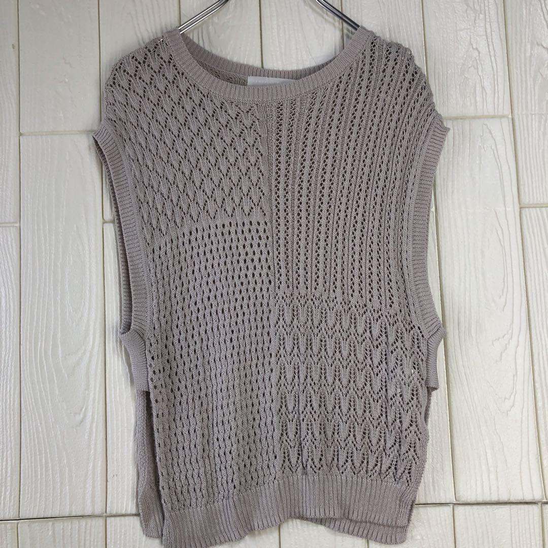 - グレー 編み込みニットベスト 36cm肩幅 47cm着丈