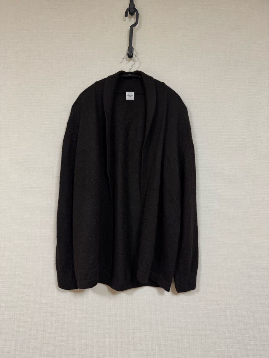 > EDIFICE エディフィス Lサイズ ボタンレス ショールカラー アルパカカーディガン ニット セーター ダークブラウン ブラック 長袖