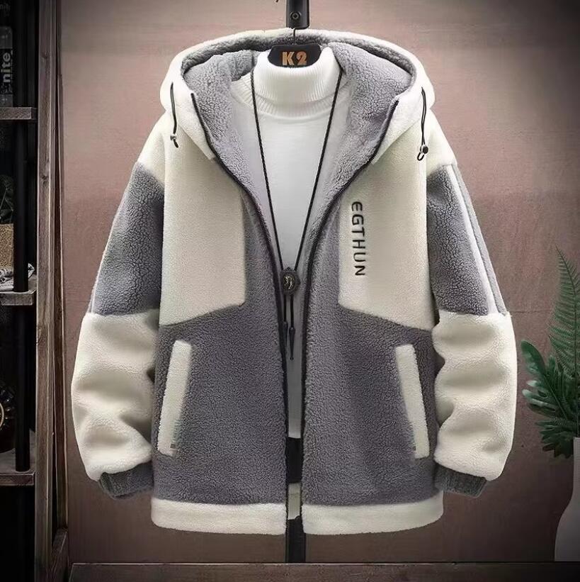 > M-3XLサイズ選択*メンズフリースジャケット 裏起毛フード付き フリースジャンパーアウターボアジャケット ブルゾンパーカー *ベージュ