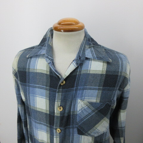 - 80s KINGSPORT ネルシャツ S 青 オールド アメカジ古着 sy2939