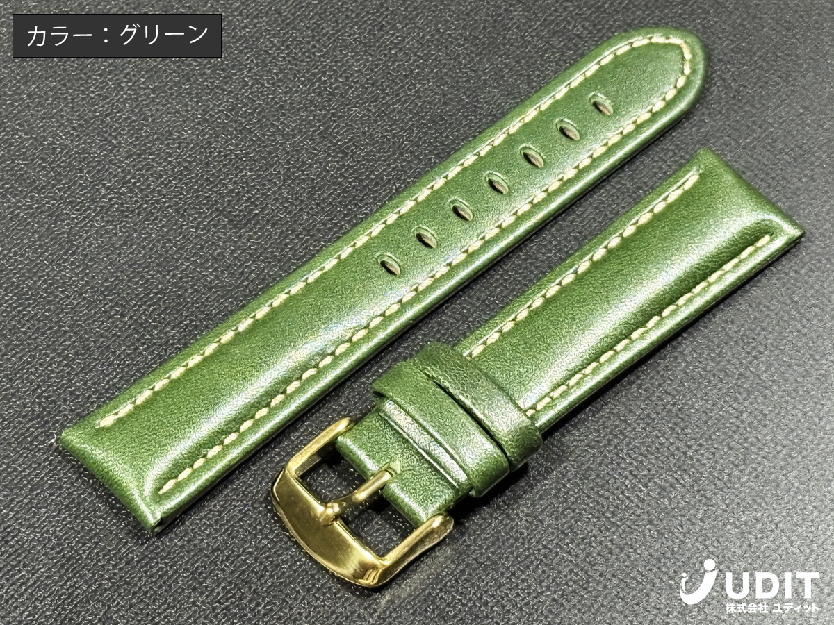 - ラグ幅20mm 本革 腕時計ベルト コードバン グリーン レザーベルト 時計用バンド ゴールド尾錠(ステンレス製)
