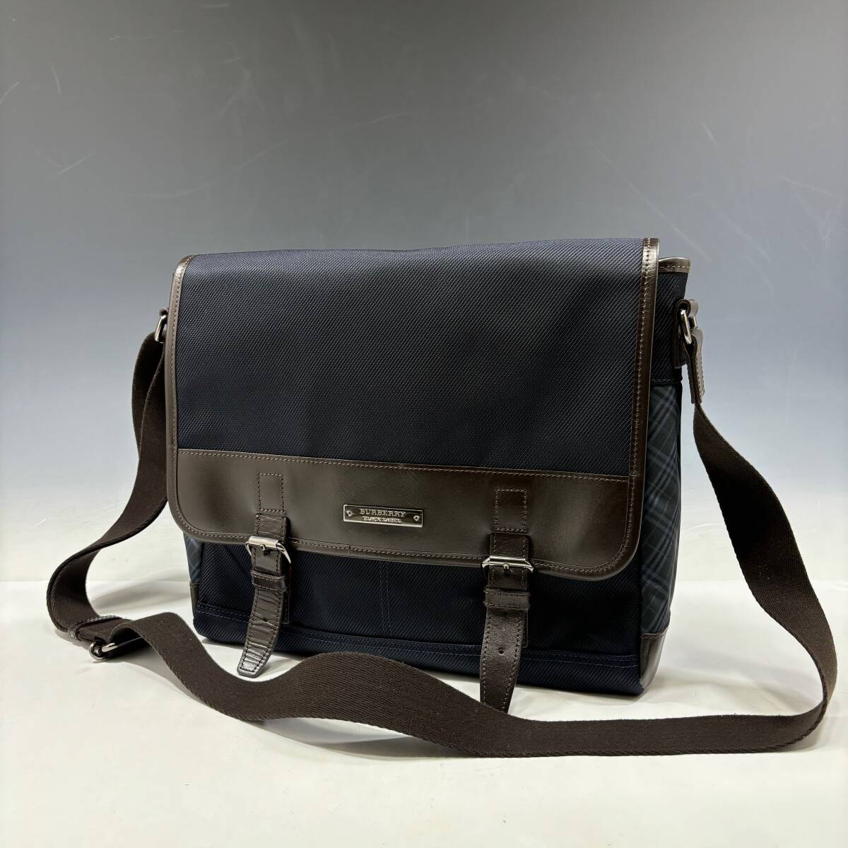 - 状態良【バーバリー ブラックレーベル本物】ショルダーバッグ/ナイロンキャンバス×レザー/ネイビー×ブラウン/斜めがけ【B188M