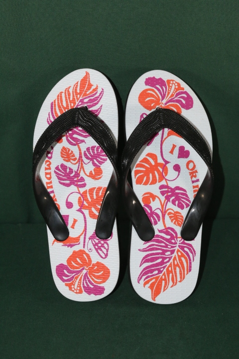 - 沖縄土産 島ぞうり 23cm レディース向けサイズ ハイビスカス柄