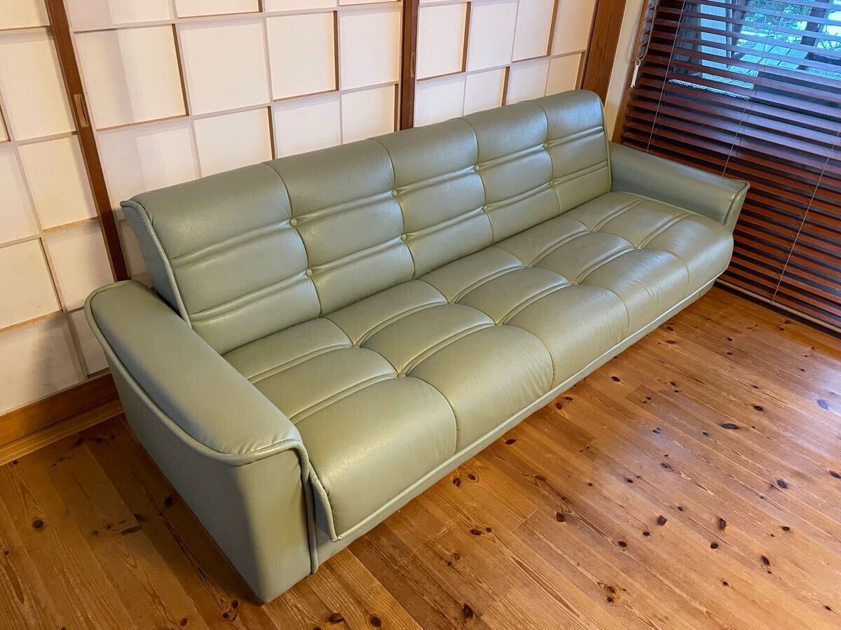 > ミント ライトグリーン 加工レザーソファ リビング3人掛け 3Pソファ素人計測w160d110h80cm インテリア 収納あり