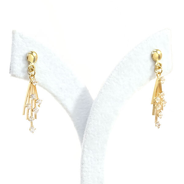 > 送料無料 本物 ゴールドデザインピアス K18YG ジルコニア レディースアクセサリー おしゃれ 可愛い 普段使い キラキラ